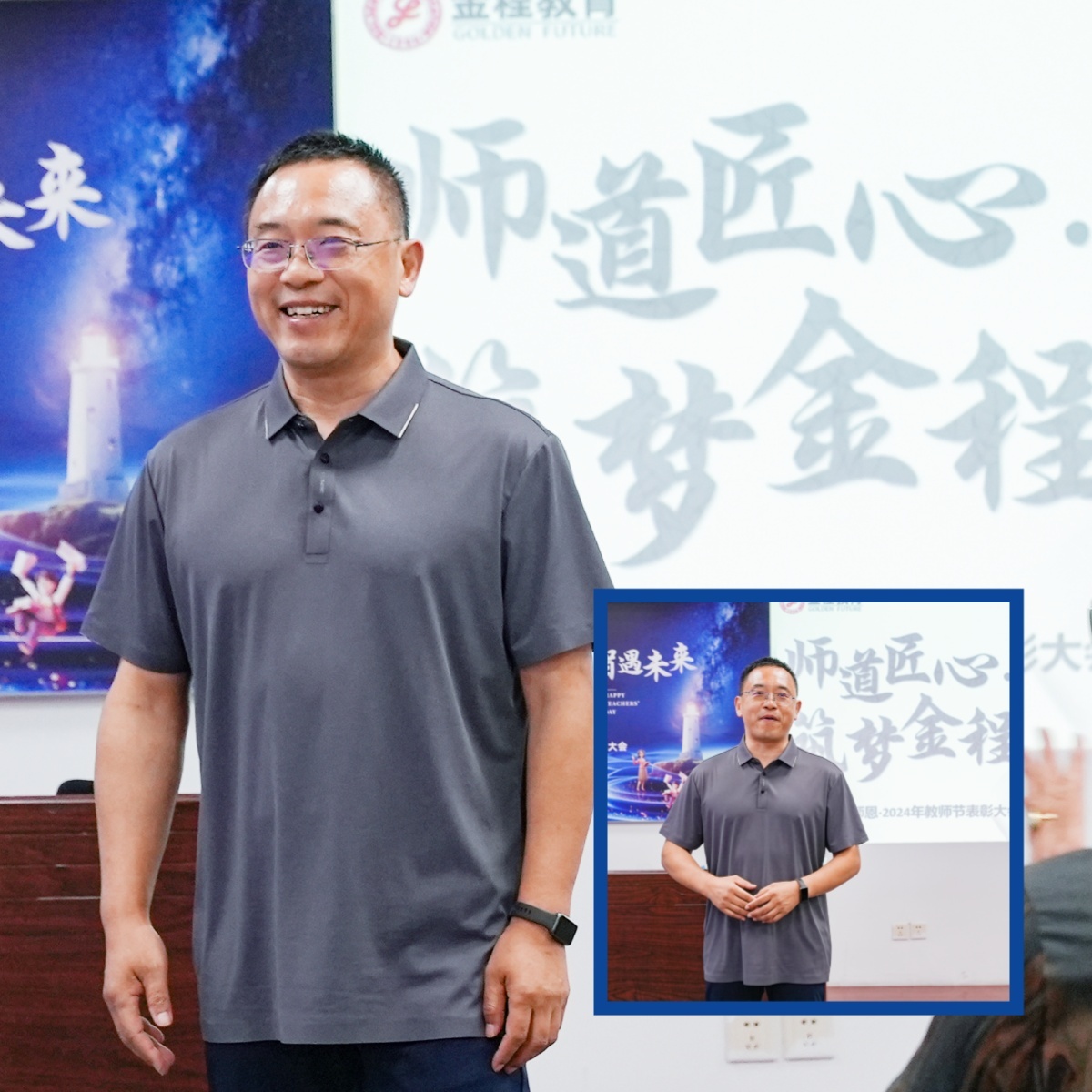 當(dāng)天的活動(dòng)上,金程教育為全體教師送上了精美的禮物,表達(dá)了對(duì)他們辛勤付出的認(rèn)可和感激。隨后,首席培訓(xùn)師、金程教育董事長(zhǎng)湯震宇老師發(fā)表了感人肺腑的講話,他回顧了自己24年的教育生涯,分享了教育的真諦和心得。