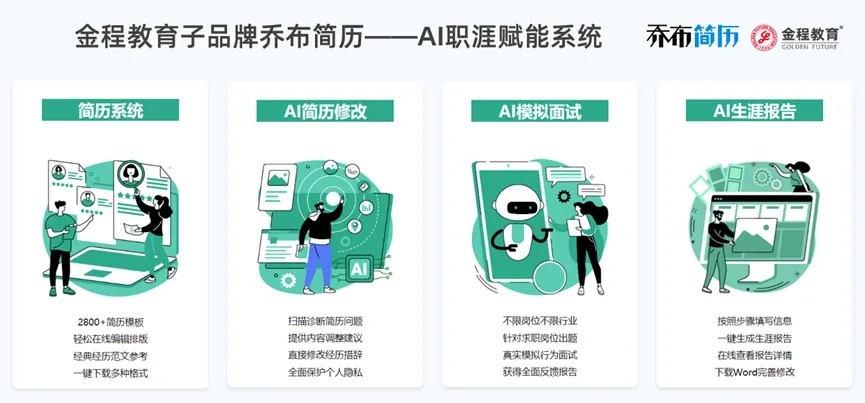 依托前沿AI大模型技術(shù)與財(cái)經(jīng)教育深耕經(jīng)驗(yàn),金程教育旗下喬布簡(jiǎn)歷打造的AI職涯賦能系統(tǒng),聚焦大學(xué)生與職場(chǎng)新人需求,以科技創(chuàng)新重塑求職全鏈路,提供從簡(jiǎn)歷優(yōu)化、面試輔導(dǎo)到職業(yè)發(fā)展的全周期智慧服務(wù)。