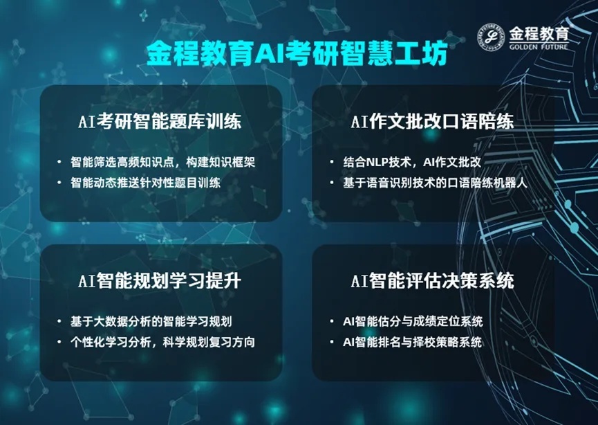 金程教育將AI大模型技術(shù)與考研升學(xué)輔導(dǎo)深度融合,打造AI考研智慧工坊,構(gòu)建覆蓋全周期的智能化備考解決方案,助力考生高效突破備考瓶頸,把握升學(xué)機(jī)遇。