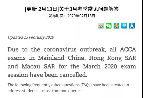 1. 為何中國地區(qū)(包括中國內(nèi)地,香港,澳門)3月的ACCA 考試會(huì)被全部取消?
