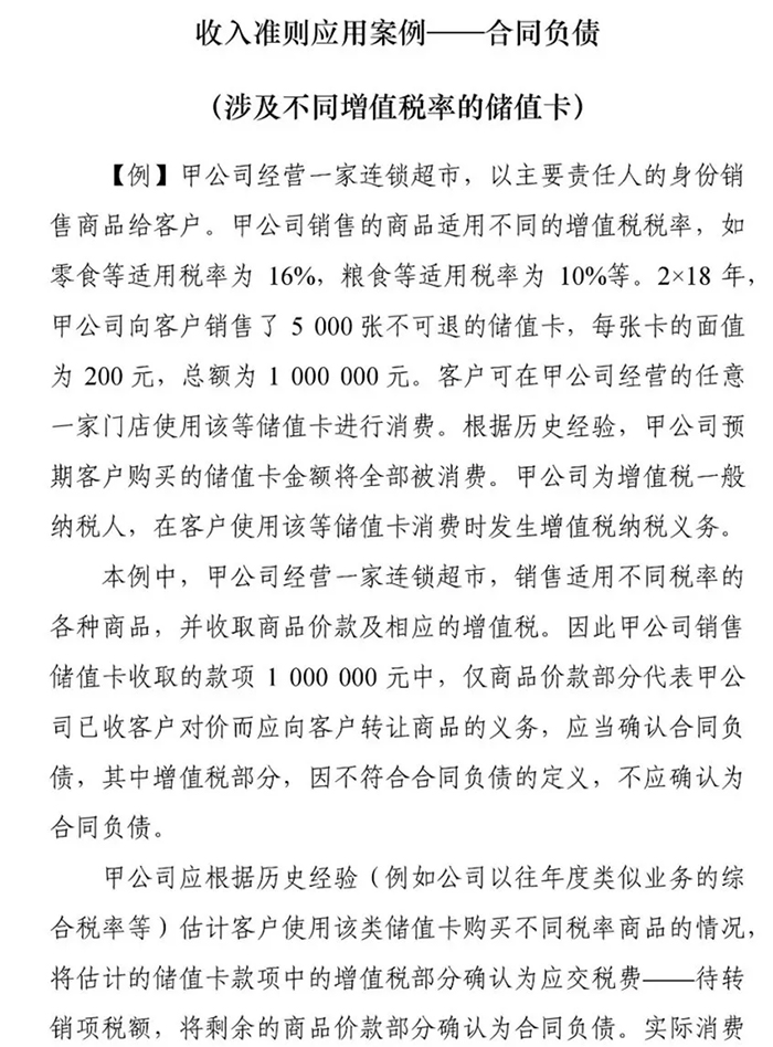 收入準(zhǔn)則應(yīng)用案例——合同負(fù)債(涉及不同增值稅率的儲值卡)