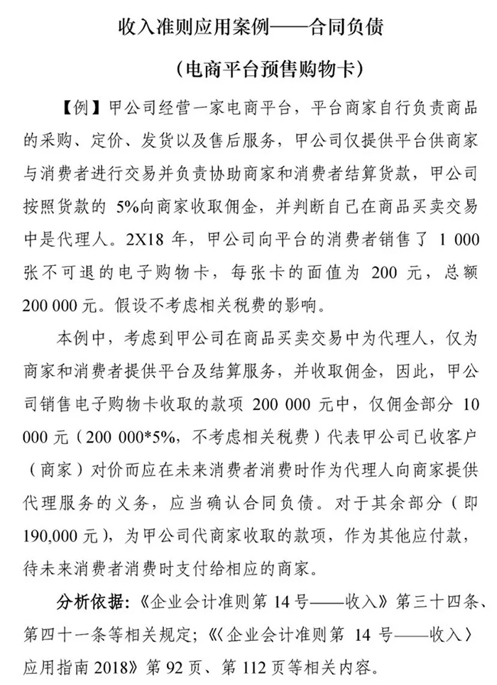 收入準(zhǔn)則應(yīng)用案例——合同負(fù)債(電商平臺預(yù)售購物卡)