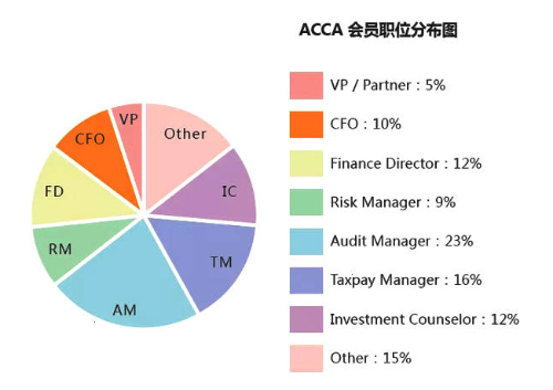 由此可見,約有近5%的ACCA會員擔任著公司副總裁/合伙人崗位,10%的ACCA會員擔任企業(yè)CFO(首席財務官),而其他則大都擔任著企業(yè)的財務總監(jiān)及經理等崗位。 高級別的財務管理崗位,這也使得他們擁有了超過普通員工所具有的薪資待遇。