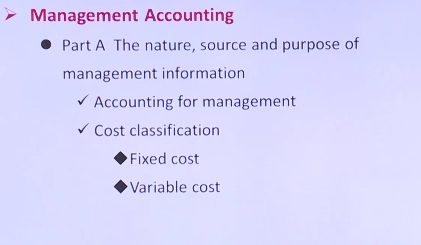 (重點:介紹管理會計 Accounting for management 的基本知識和技能,考試占比比較低。但是Cost classification基礎(chǔ)運用很頻繁)