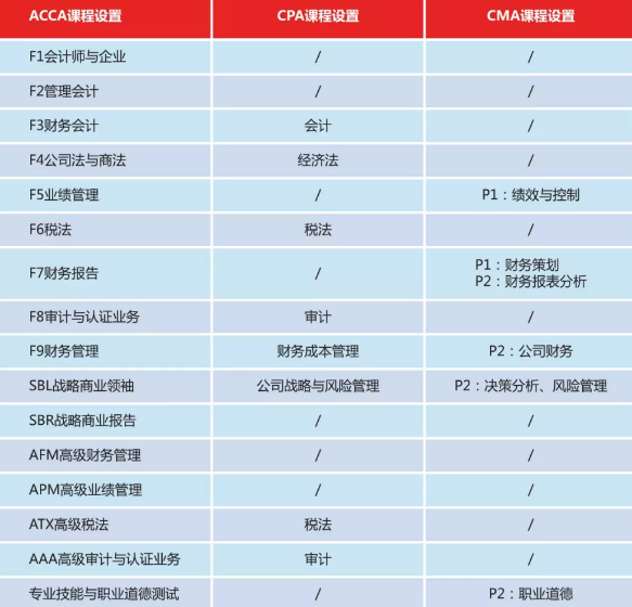附圖:ACCA、CPA、CMA課程設(shè)置的異同點(diǎn)