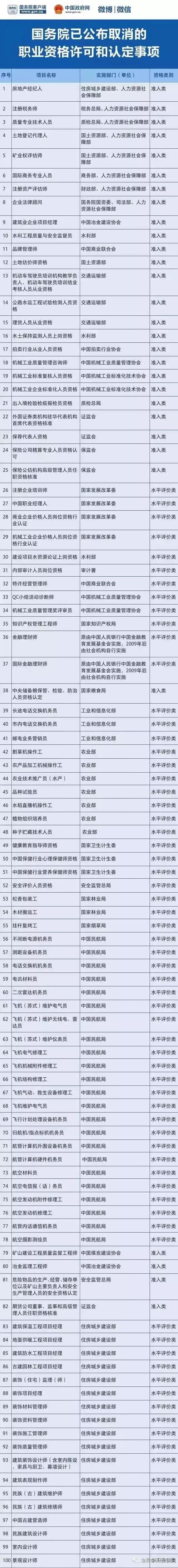 以下就是國務(wù)院取消的證書: