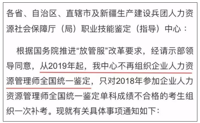 前段時(shí)間國家就業(yè)培訓(xùn)技術(shù)中心放出一條重磅消息:從2019年開始,不再組織企業(yè)人力資源管理師全國統(tǒng)一鑒定。
