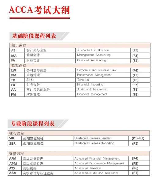 很多初次學(xué)習(xí)ACCA的小伙伴想要考取ACCA的人一定曾經(jīng)有過這樣的疑問,ACCA考試科目一共15門,其中包含11門必修課,2門選修課(4選2),必須要全部完成13門課程考試才能獲得ACCA證書。