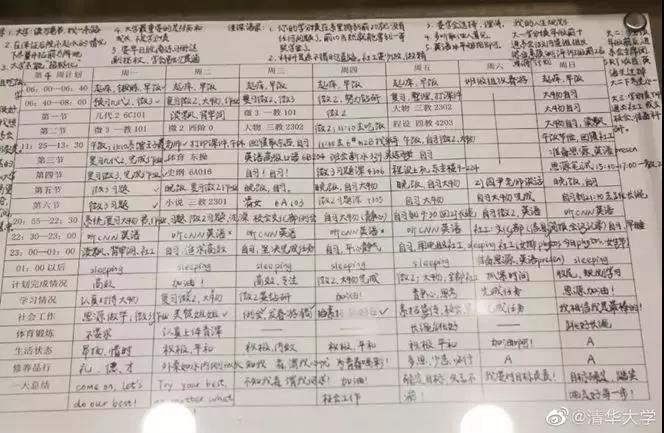 制定這份計(jì)劃表的,正是清華叱咤風(fēng)云的一對(duì)雙胞胎“網(wǎng)紅”姐妹——馬冬昕、馬冬晗。