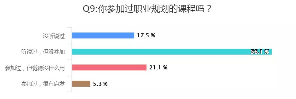 近期,金程ACCA也在做關(guān)于【大學(xué)生職業(yè)規(guī)劃】的調(diào)查問(wèn)卷,在已收到的57份調(diào)查問(wèn)卷中可以看到,56.1%的同學(xué)雖然聽(tīng)說(shuō)過(guò)關(guān)于職業(yè)規(guī)劃的相關(guān)課程,但并沒(méi)有去參加或者并沒(méi)有去了解。