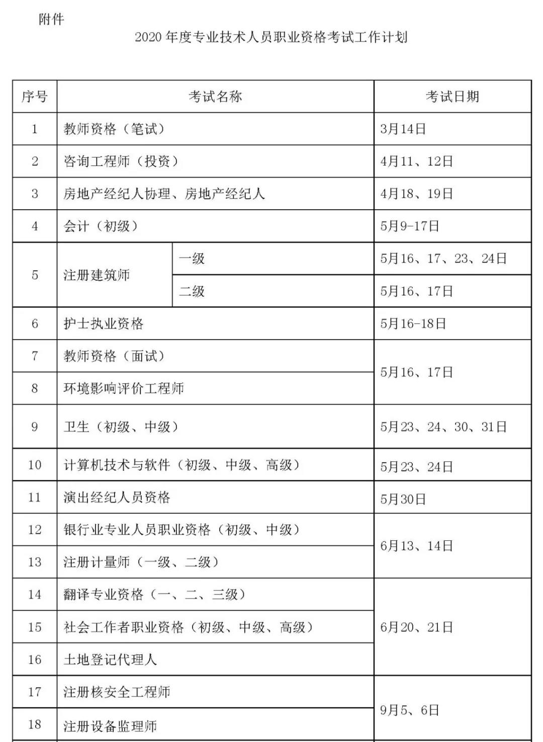 附件:2020年度專業(yè)技術(shù)人員職業(yè)資格考試工作計(jì)劃