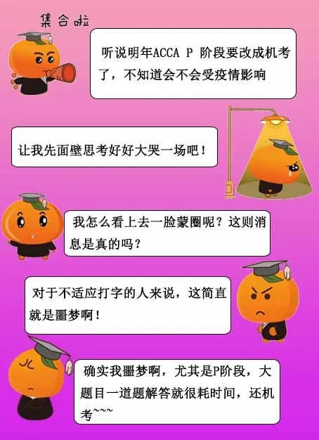 最新官方消息ACCA很多國(guó)家的P階段考試改革成機(jī)考了,中國(guó)的話是從2021年三月份開始正式實(shí)施,不知道會(huì)不會(huì)受疫情的影響。