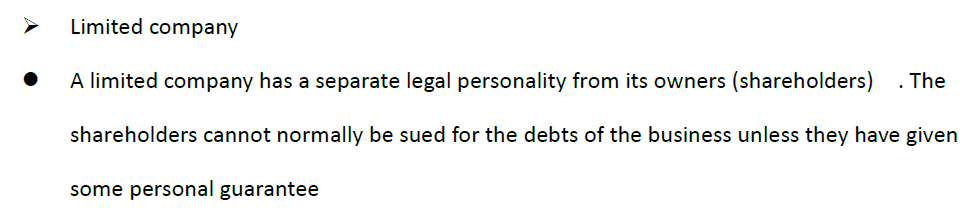 獨立的法人資格,什么叫獨立的法人呢,就是把公司當(dāng)做人,它自己有它的資產(chǎn),負債,自己承擔(dān)對應(yīng)的責(zé)任,如果你是business alone 以及partnership,你開的奶茶店倒閉了,但如果你還欠房東3萬塊錢房租,那你也是要必須還的,如果不還房東可以把你家冰箱和洗衣機搬走,但如果你是limit company,你就不用還這三萬塊,因為公司它自己承擔(dān)自己的債務(wù),和你無關(guān),這就是獨立的法人資格。