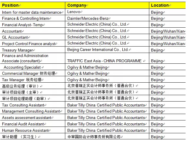 最新的ACCA認(rèn)可雇主招聘信息出爐了!有實(shí)習(xí)有全職,感興趣的同學(xué)請(qǐng)參考! 投簡歷時(shí)可注明消息來自ACCA北京代表處。