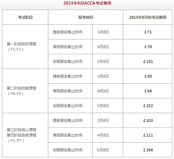 ACCA 2015年6月份考試報名優(yōu)惠正在火熱進行中。ACCA報名費用詳情如下: 2015年ACCA考試講義+大綱+真題免費獲取》》