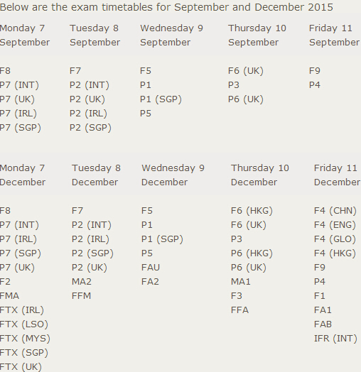 2015年9月和12月的ACCA考試時間分別為9月7-11日及12月7-11日