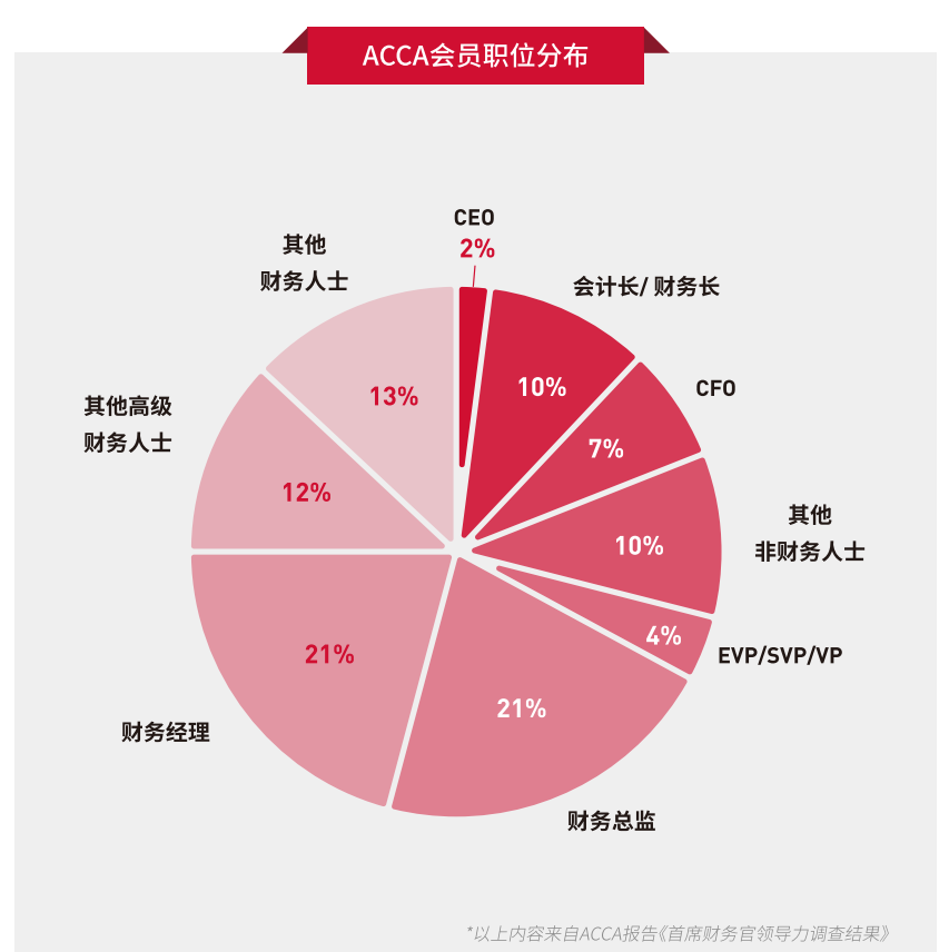 據(jù)統(tǒng)計(jì),ACCA會(huì)員大都在工商企業(yè)財(cái)務(wù)部門、(四大)審計(jì)/會(huì)計(jì)師事務(wù)所、金融機(jī)構(gòu)和財(cái)政、稅務(wù)部門從事高級(jí)財(cái)務(wù)管理工作,因此他們的薪資較普通財(cái)務(wù)人士普遍較高。