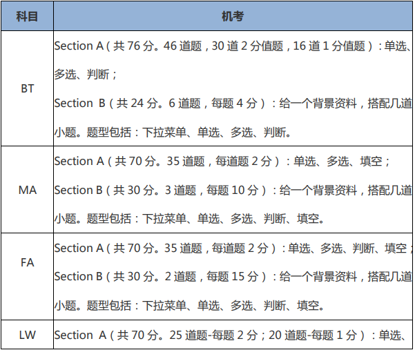 很多想考ACCA證書的人,都想提前打聽一下ACCA考試題型和分值各是什么,做到心中有數(shù)后,才更好的有計劃的進入到備考狀態(tài)中去,下面小編就把ACCA的考試題型和考試的分值情況整理出來,分享給大家!