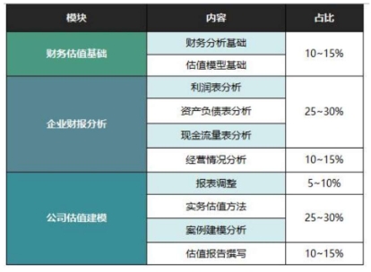 AFV證書知識體系分為三大模塊,分別為基礎(chǔ)知識模塊、財(cái)務(wù)分析應(yīng)用模塊和估值建模應(yīng)用模塊。通過第一模塊的基礎(chǔ)知識學(xué)習(xí),幫助學(xué)員建立系統(tǒng)性知識架構(gòu)體系;同時(shí)通過第二、三模塊,結(jié)合大量實(shí)際的財(cái)務(wù)估值案例,幫助學(xué)員積累實(shí)務(wù)經(jīng)驗(yàn),有效掌握金融領(lǐng)域財(cái)務(wù)估值的實(shí)戰(zhàn)技巧。