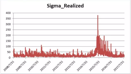 從2016年中旬左右開始,全球的波動率就一直處于歷史的低位。中國波指更是非常穩(wěn)定的一路下探,從的63.79一直到了的7.95。