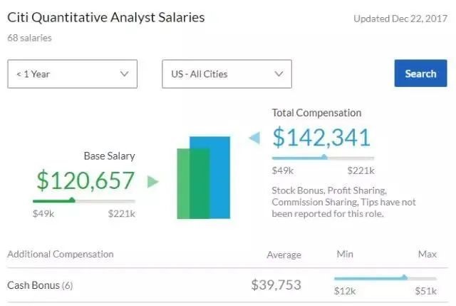 在美國投行,一個沒有經(jīng)驗的Quant,每年大概能掙到平均12萬美金的Base Salar再加上股票獎金、傭金、年終分紅等獎金。