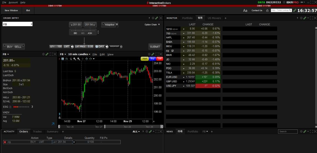 IB 框架會(huì)比優(yōu)礦復(fù)雜,會(huì)用到面向?qū)ο蟮亩嗬^承和重寫(xiě)父類方法,以及 Thread 線程控制,因此提供比較大的彈性,針對(duì)策略上細(xì)節(jié)控制,這部分就屬于進(jìn)階人員,當(dāng)累積到一定程度量化經(jīng)驗(yàn)和想要處理國(guó)外量化交易。下圖為 IB 運(yùn)作畫(huà)面,提供的金融資訊比優(yōu)礦的內(nèi)容更多。