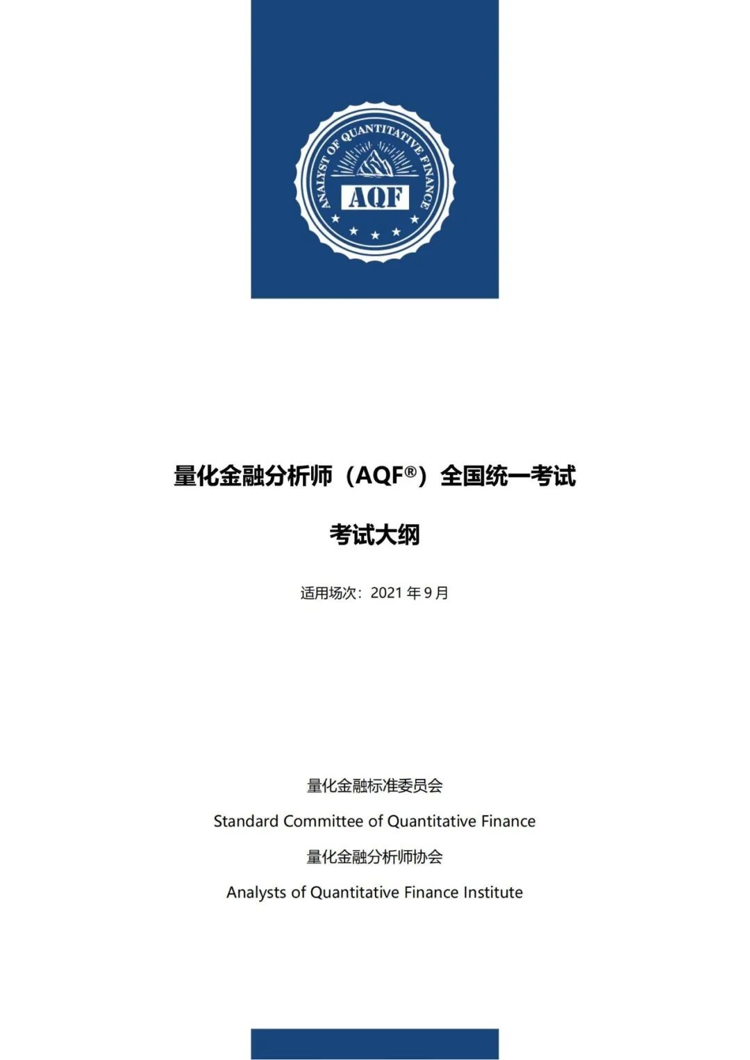 AQF:量化金融分析師(簡稱AQF®,Analyst of Quantitative Finance)由量化金融標(biāo)準(zhǔn)委員會(Standard Committee of Quantitative Finance,SCQF)主考并頒證,是代表量化金融領(lǐng)域的專業(yè)水平證書。