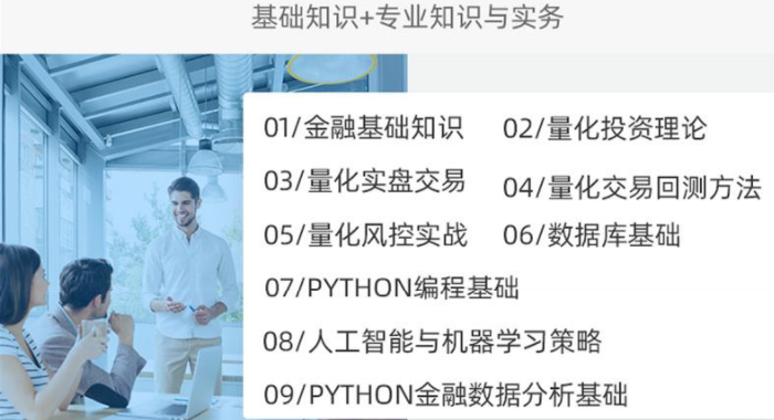 2、量化投資基礎(chǔ):介紹相關(guān)量化領(lǐng)域必備的金融學(xué)知識,包括了數(shù)量分析、權(quán)益類資產(chǎn)、固定收益類資產(chǎn)、投資組合、衍生品投資、另類投資、資產(chǎn)組合管理等。