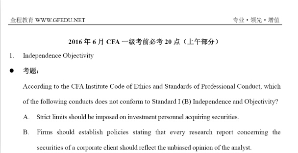 2016年6月CFA一級(jí)考前必考20點(diǎn)(必考題)