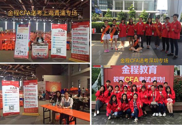 2016年6月4日,北京時間9點整,被譽為“全球金融第一考”的美國特許金融分析師CFA一級、二級、三級考試正式于全球168個與地區(qū)同時開考,共有22W名考生參加。金程教育作為國內領先的金融培訓機構,為幫助考生順利通過考試,分別在上海、北京、成都、廣州、南京、深圳、天津、香港九個考點安排送考服務,為CFA考生做好每一步輔助,幫助考生順利通過CFA考試。