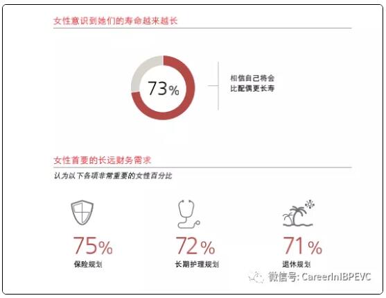 這是我們首次通過(guò)數(shù)據(jù)來(lái)印證中國(guó)內(nèi)地女性的財(cái)富觀。中國(guó)內(nèi)地女性展現(xiàn)出越來(lái)越獨(dú)立自主的一面,'她經(jīng)濟(jì)'已經(jīng)成為推動(dòng)社會(huì)經(jīng)濟(jì)發(fā)展的重要力量。這不僅僅體現(xiàn)在她們的消費(fèi)觀,更重要的是她們更傾向于掌控自己的財(cái)富。她們已經(jīng)普遍意識(shí)到未來(lái)女性壽命較男性更長(zhǎng),同時(shí)意識(shí)到長(zhǎng)遠(yuǎn)財(cái)務(wù)規(guī)劃的必要性及迫切性,會(huì)對(duì)自身的保障、退休及醫(yī)療等方面未雨綢繆。建議女性盡早為自己及家庭在不同階段做好財(cái)富規(guī)劃和保障。