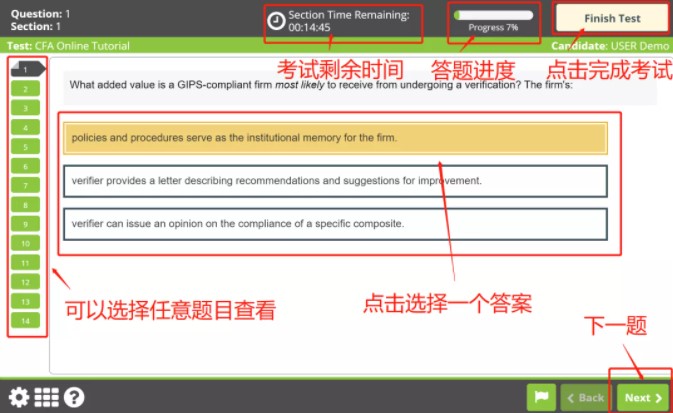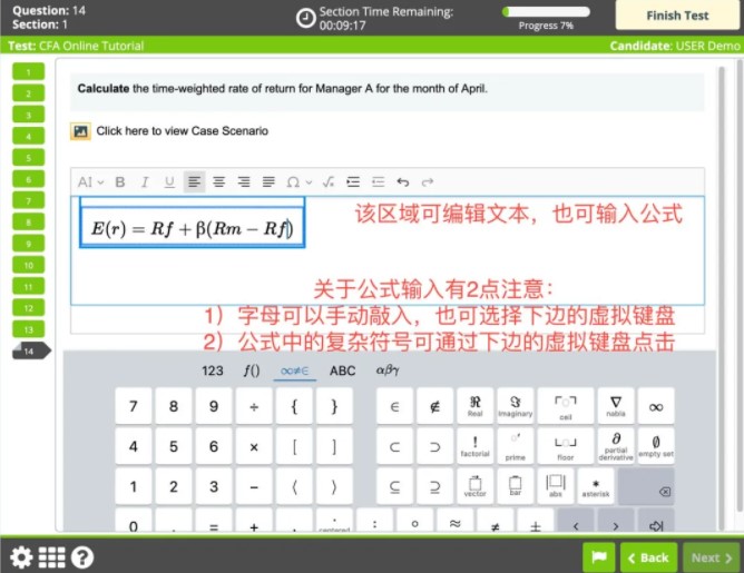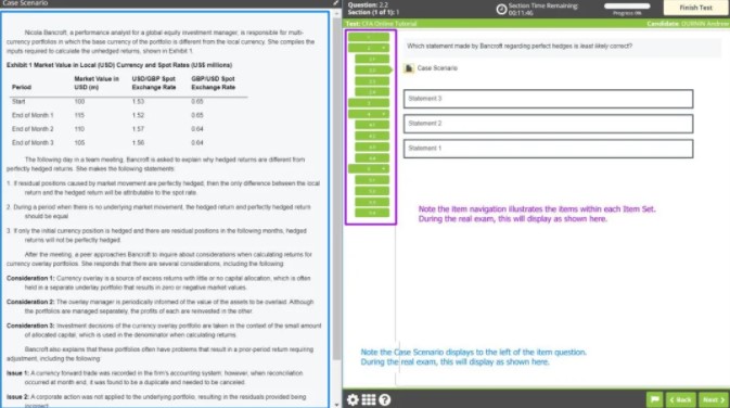 CFA二、三級機考中的case題的界面,題目文本會在左側呈現(xiàn)。