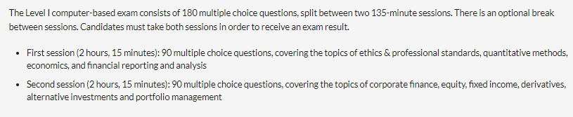 021年起,CFA一級(jí)考試將由原來的240題變更為180題,每場(chǎng)考試90題。