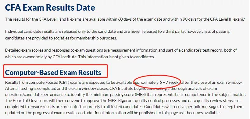 協(xié)會(huì)官方網(wǎng)址對(duì)于機(jī)考成績(jī)公布時(shí)間有提到:2021年11月CFA成績(jī)公布時(shí)間會(huì)等到全部11月考試窗口期結(jié)束(也就是11月30號(hào)后),會(huì)統(tǒng)一全面細(xì)致的統(tǒng)計(jì)分析考生們的成績(jī)。