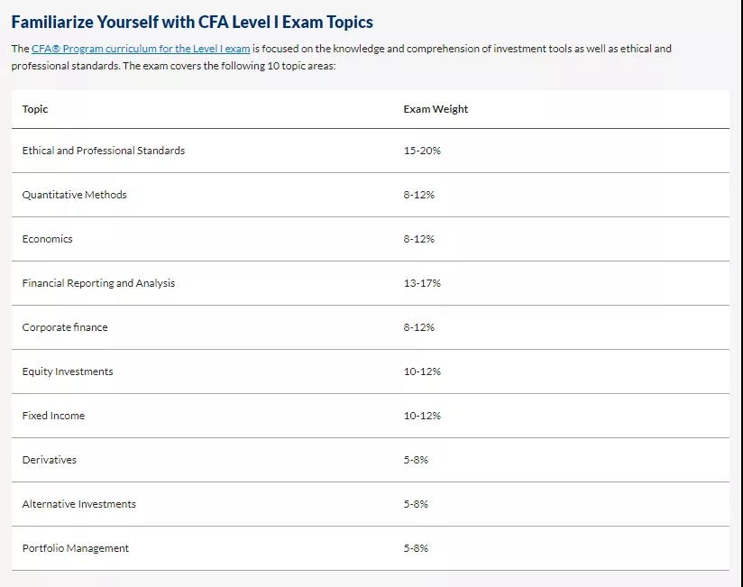 2023年CFA考試時間還沒有公布,不過CFA考試科目可以參考2022年最新的比重規(guī)劃,給大家介紹一下,考試科目基本上不會發(fā)生太大的變化,具體如下: