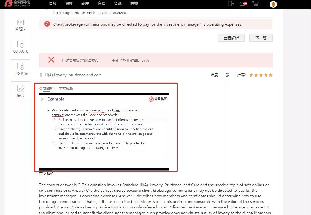 金程CFA題庫中每道題都包含文字解析+視頻講解;隨做隨看,錯(cuò)題難題一鍵收藏,實(shí)時(shí)查看,方便后期翻閱復(fù)習(xí)。
