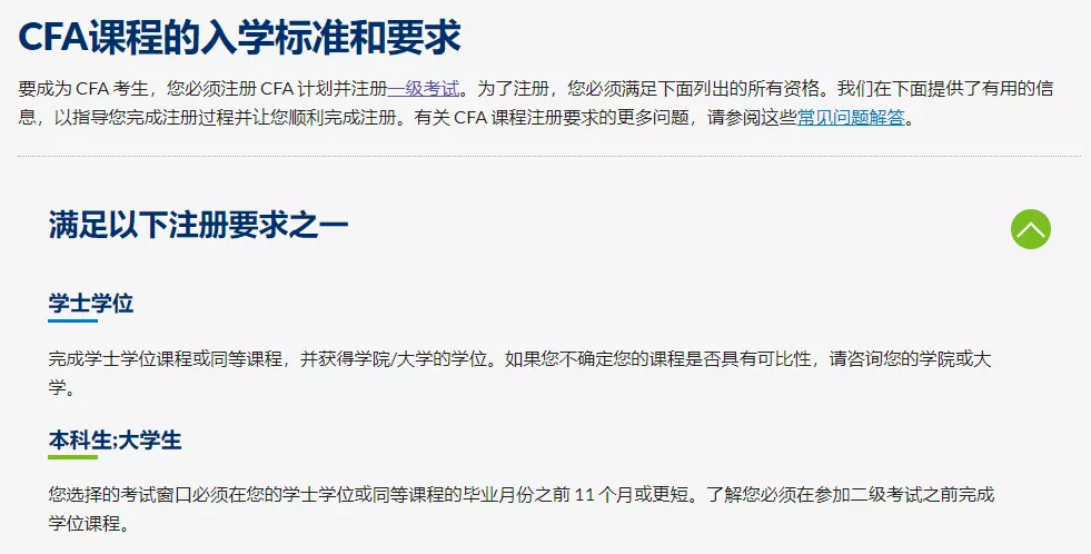 首先考生在報(bào)名參加CFA考試時(shí),要具備本科(或相當(dāng)程度)的學(xué)歷。