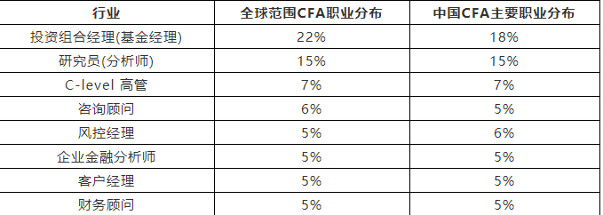 根據(jù)公開(kāi)數(shù)據(jù),全球CFA持證人接近一半從事投資組合經(jīng)理、基金經(jīng)理、分析師的工作。