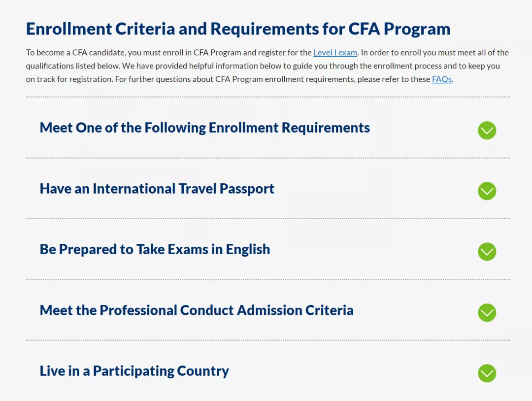 CFA協(xié)會(huì)規(guī)定,注冊(cè)報(bào)名CFA考試,必須符合以下要求: