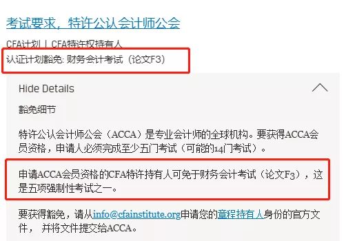 大家對ACCA肯定都不陌生,協(xié)會政策表明,CFA持證人在考ACCA的時候,有資格免考ACCA的F3科目。作為ACCA的五個必考科目之一,這項政策對要考ACCA的CFA持證人來說,是不錯的福利。