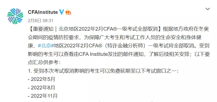 考前只剩六天,昨天協(xié)會(huì)宣布,收到冬奧會(huì)疫情防控要求,北京的一級(jí)考試考場(chǎng)取消,之前也陸陸續(xù)續(xù)有幾個(gè)考場(chǎng)取消了,但是協(xié)會(huì)已經(jīng)盡力協(xié)調(diào)了,能去考試的同學(xué)們千萬(wàn)不要放棄,下面我們來(lái)了解一下2月CFA 中國(guó)考試必帶物品清單,即將考試的同學(xué)要牢記。