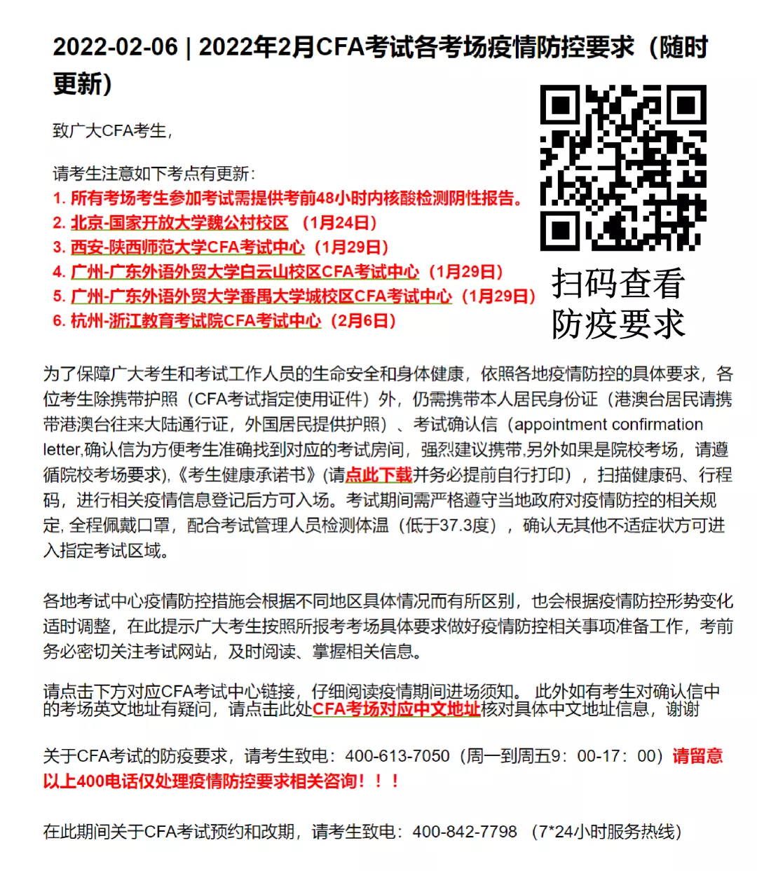 當(dāng)然這個(gè)CFA 中國(guó)防疫要求也是實(shí)時(shí)更新,不斷變化的,具體如下: