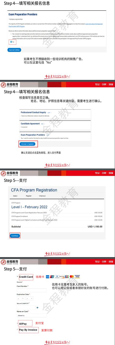2022年CFA(特許金融分析師)考試報(bào)名流程圖文詳解,根據(jù)CFA協(xié)會(huì)公告:對于考試報(bào)名,越早報(bào)名費(fèi)用越低(Early Bird),第一個(gè)報(bào)名階段費(fèi)用低,第二階段考試報(bào)名費(fèi)用依次增加,請考生注意CFA報(bào)名各個(gè)階段的截止日期,以免錯(cuò)過時(shí)間。為幫助考生順利報(bào)考,金程網(wǎng)校為考生整理分享特許金融分析師CFA報(bào)名流程圖文介紹,詳情如下: