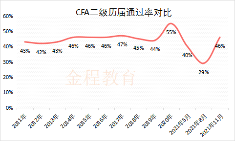到了2021年11月,CFA二級通過率又回升至46%,再次回到正常水平,讓CFA二級考生們又重新看到了希望。