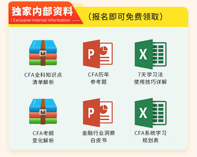 備注:(CFA備考資料:1、CFA職業(yè)倫理道德手冊(cè)2、CFA專(zhuān)用詞匯表3、CFA專(zhuān)用公式表 4、CFA前導(dǎo)課程5、CFA報(bào)考流程引導(dǎo)圖6、CFA電子版資料)