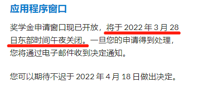 2022年CFA官網(wǎng)女性獎學(xué)金申請入口于3月1日上午8:00開放,將在3月28日美國東部時間午夜結(jié)束。您可以期待不遲于2022年4月18日做出決定,具體如下。