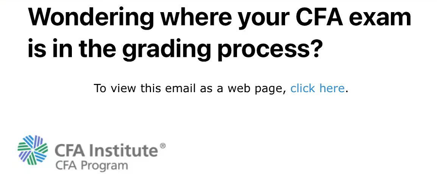 協(xié)會這個郵件的標題就有點意思了:想知道你的CFA考試到評分的哪一步了嗎?