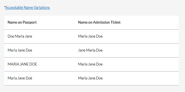 提供如下名稱(chēng)變體被接受的示例,CFA準(zhǔn)考信與護(hù)照姓名對(duì)應(yīng)規(guī)則: