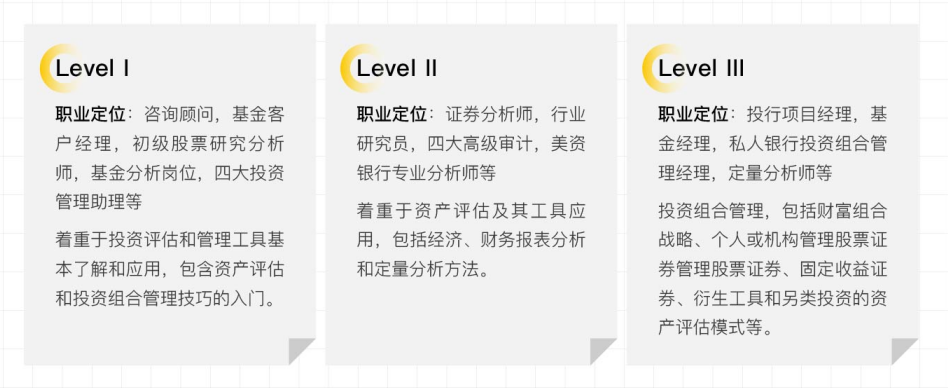 如果只考出CFA一級考試或者是二級,雖然沒有證書,但是有成績單,在官網(wǎng)上可供打印,大家在簡歷上面也可以填寫CFA考試等級。