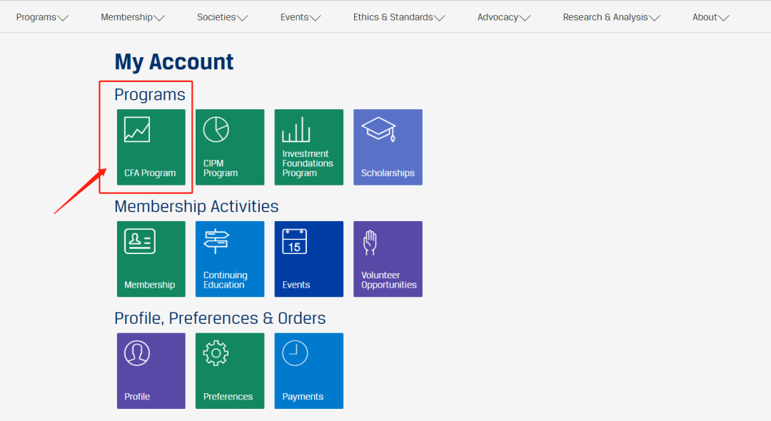 如果考生希望更改已完成的考位預(yù)約,請(qǐng)?jiān)诳荚嚧翱趯?duì)應(yīng)的預(yù)約變更截止日期(Rescheduling Deadline)之前進(jìn)行更改,此操作請(qǐng)通過CFA Institute賬號(hào)中的CFA Program 模塊進(jìn)行。